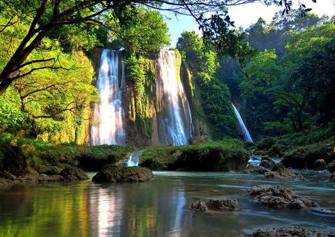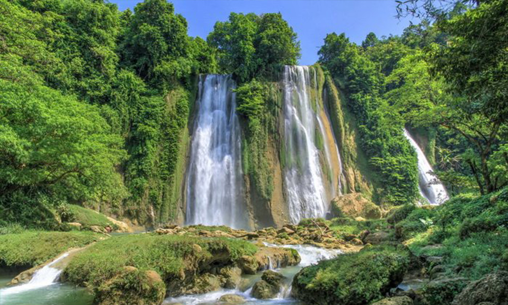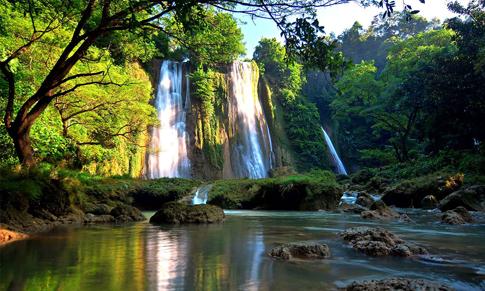 Wisatasukabumi.com - Secara adminstratif Curug Cikaso terletak di Dusun Ciniti, Desa Cibitung, Kecamatan Surade, Sukabumi, Jawa Barat. Curug Cikaso berjarak tempuh sekitar 8 Km dari Surade, 15 Km dari Jampang Kulon, 30 Km dari Ujunggenteng, sekitar 110 Km dari Kota Sukabumi, dan +/- 70 Km dari Palabuhanratu. Patokan pertama perjalanan diawali dari Kota Sukabumi, baik yang datang dari arah Jakarta, Bogor, ataupun Bandung. Dari Kota Sukabumi, ambil jalan menuju Ujunggenteng melalui Kecamatan Jampangtengah – Kecamatan Lengkong – Kecamatan Waluran – Kecamatan Jampangkulon. Patokan terakhir perjalanan menuju Curug Cikaso yaitu kota kecil Surade yang memakan waktu tempuh sekitar setengah jam (berjarak tempuh sekitar 8 Km) dengan kendaraan roda dua atau empat hingga tiba di pertigaan Jalan Cikaso dengan kondisi jalan yang berliku dan beraspal baik. Dari Simpang tiga (sebagai jalan masuk dan juga tempat parkir bagi yang membawa kendaraan) ini perjalanan diteruskan dengan berjalan kaki sekitar 2 Km menuju lokasi melewati pematang sawah dan ladang penduduk. Selain itu dapat juga menggunakan sampan dengan menyusuri sungai Cikaso. Sampan ini banyak tersedia di sekitar Jembatan Cikaso. Waktu tempuh sekitar 15 menit dari warung dekat pertigaan atau persimpangan jalan menuju Curug Cikaso dan Curug Cigangsa. Harga sewa sampan sekitar Rp. 70.000/sampan (untuk 12 penumpang). Setelah sampai di dekat tepian daratan menuju curug, perjalanan dilanjutkan dengan berjalan kaki menyusuri jalan setapak sejauh 100 m hingga tiba di lokasi curug.